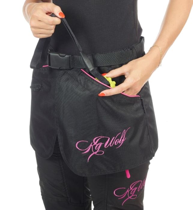This fashionable dog training kilt is water and hair repellent, has large front and back pockets. The sizes range from XS / S to XL / 2XL. 100% Polyester.
